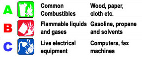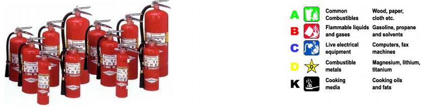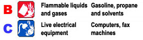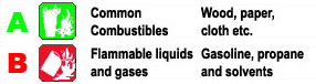 The following classes of extinguishers are suitable for the corresponding types of fires: